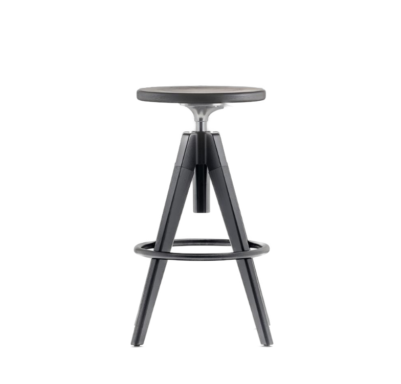 Barski stol Arki na funkcionalen način interpretira industrijski videz. Barvni stol s sediščem in nogami iz masivnega hrasta; vrtljiv in s plinskim dvižnim mehanizmom za enostavno prilagajanje višine. Jeklena opora za noge na podnožju ustvarja lep kontrast naravnemu videzu lesa.