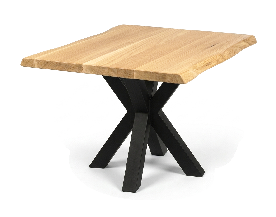 Miza Quatro S, za zunanjo in notranjo rabo, z mizno ploščo narejeno iz hrastovega lesa dimenzije 120 x 80 cm, in štirikrakim kovinskim podnožjem dimenzij 110 x 70 cm.