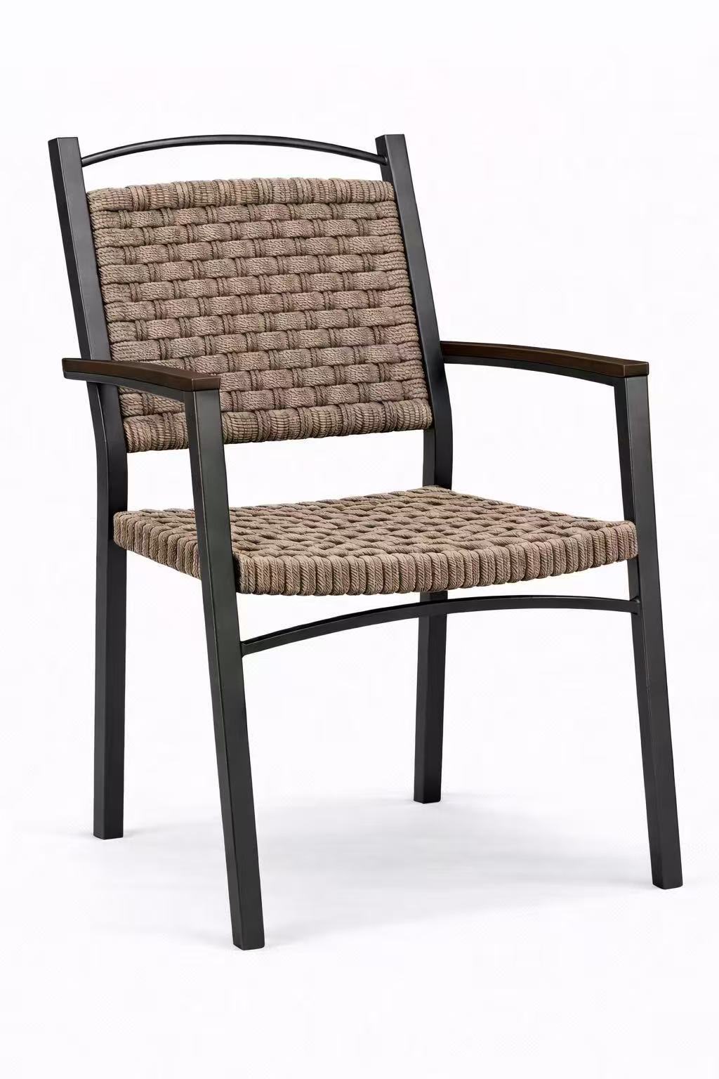 Vrtni stol SOFRA z ročnim naslonjalom, aluminjasto ogrodje, pleteno hrbtišče in sedež.